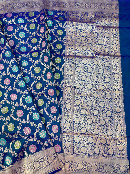 Blue pure Katan Jangla Meenakari Banaras Handloom Saree