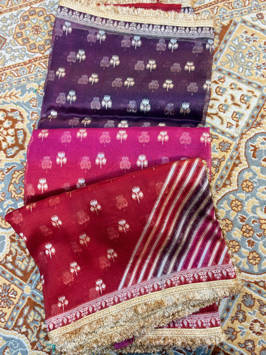 Kora Silk printed with Handwoven Zari Banarasi Saree