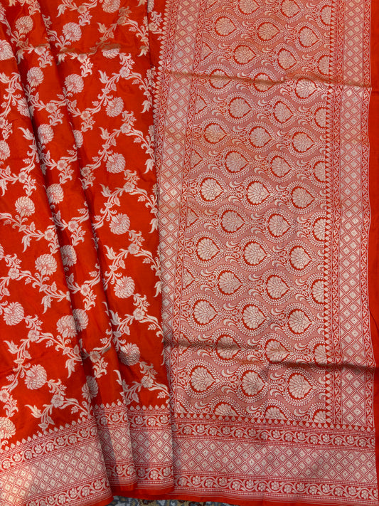 Orange Pure Katan Jangla Banarasi Handloom Saree