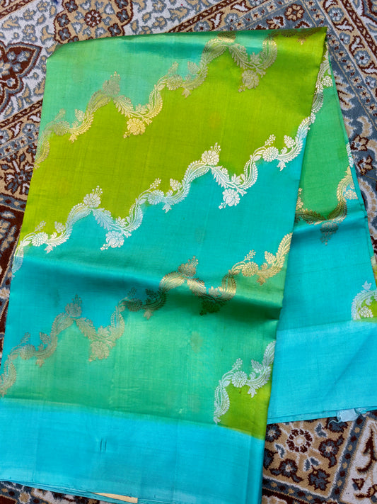 Light Green Pure Raw Mango Rungkaat Banarasi Handloom Saree