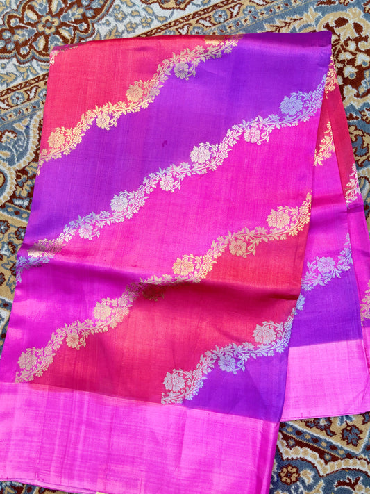 Kora Silk printed with Handwoven Zari Banarasi Saree