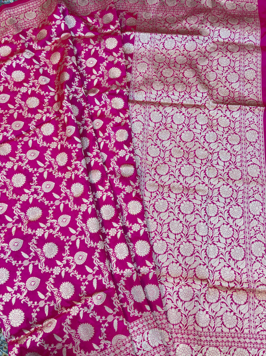 Rani Pink Pure Katan Jangla Banaras Handloom Saree