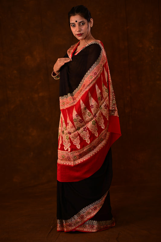 Black & Red Pure Chiffon Banarasi Handloom Saree
