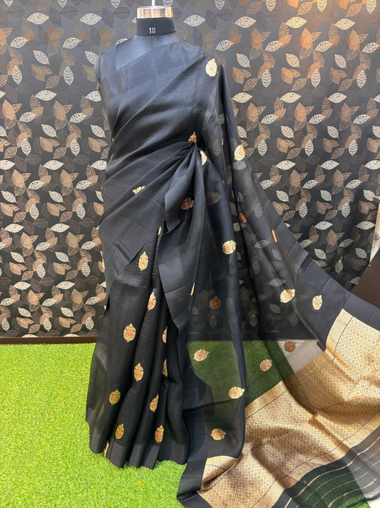Black Pure Katan Belbooti Banaras Handwoven Saree