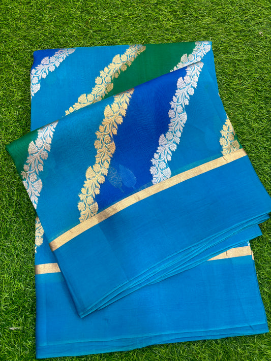 Blue sky Pure katan jangla Banarasi Handloom saree