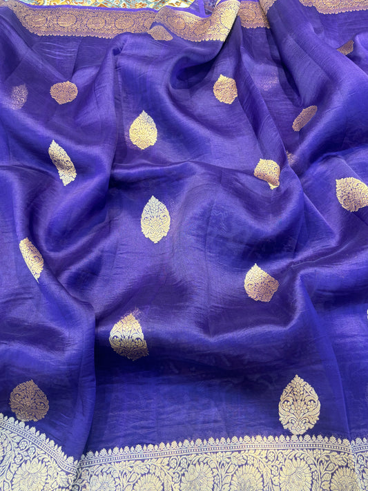 Blue Pure Khaddi Georgette Banarasi Handloom Saree