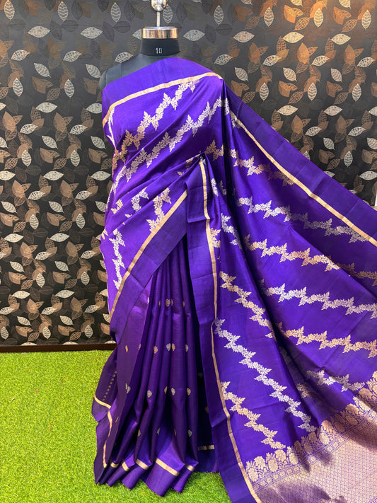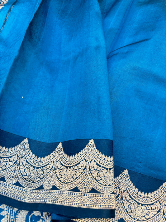 Blue Kora Katan Rungkaat Banarasi Handloom Saree