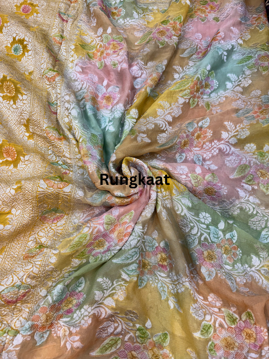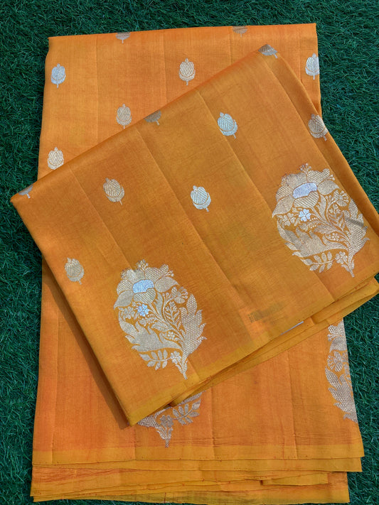 Yellow Pure Kora Tissue Rungkaat Banarasi Handloom Saree