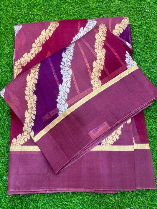 Dark Levendore Pure Mashru Kadhiyal Boota Banaras Handloom Saree