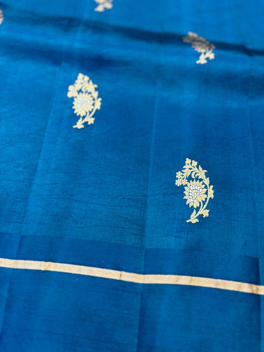 Dark Blue Sky Pure Banarasi Handloom Saree