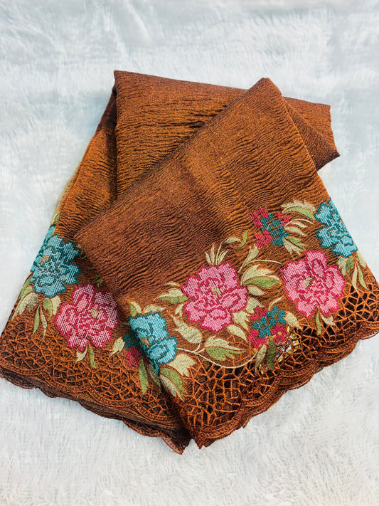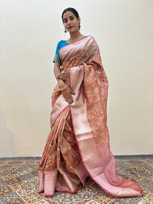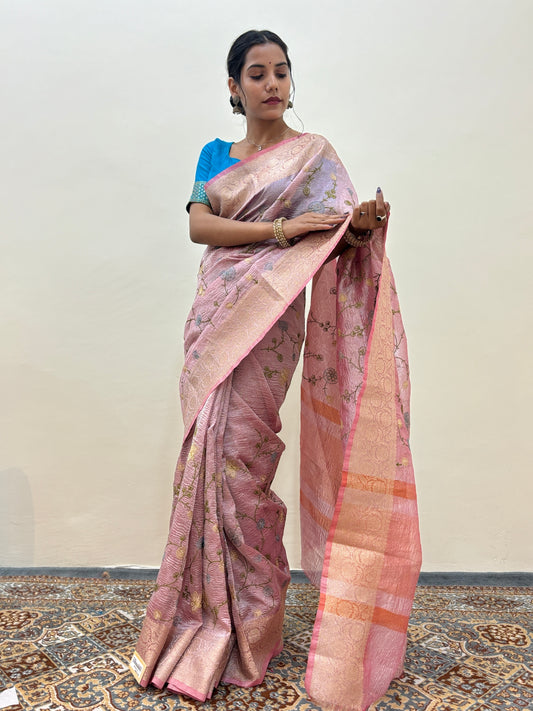 Crush Tissue with Embroidery Banarasi Handloom Saree