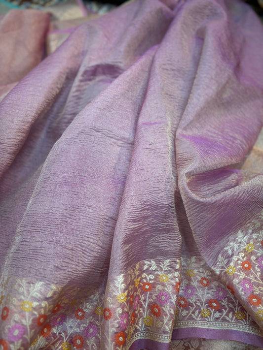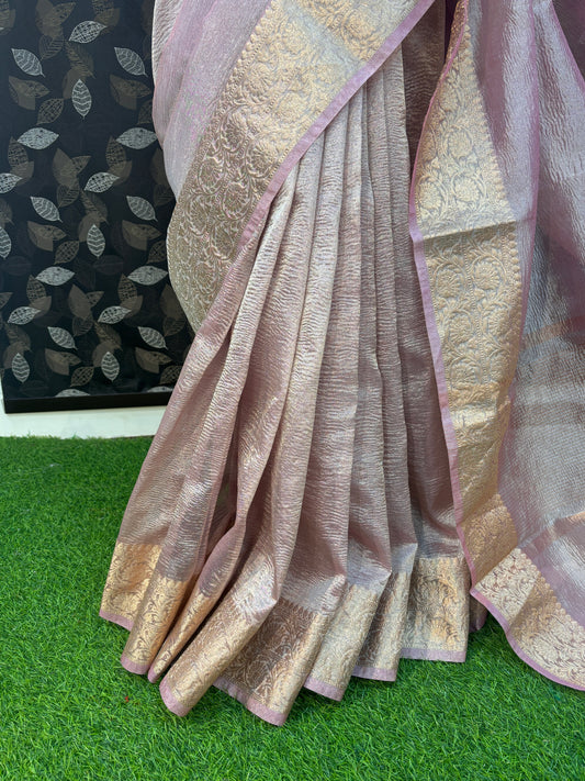Lavender Pure Crush Tissue Banarasi Handloom Saree