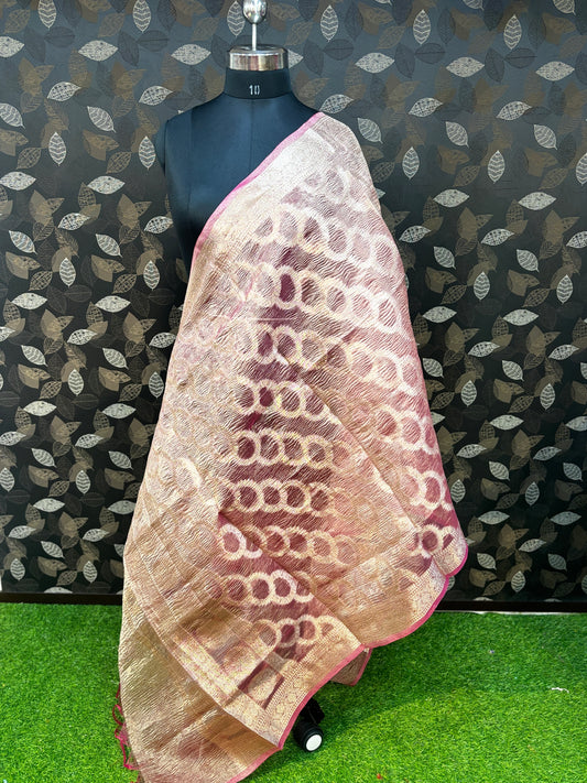 Elevate your ethnic ensemble with our exquisite Banarasi dupatta, crafted with meticulous attention to detail. This stunning piece showcases intricate handwoven patterns, luxurious silk fabric, and rich hues that reflect the essence of traditional artistry. Perfect for any occasion, whether you're dressing up for a festive celebration or adding a touch of elegance to your everyday wear. The lightweight, breathable material ensures comfort while draping beautifully over your shoulders. Pair it with your favorite saree, kurta, or lehenga for a complete look that exudes grace and sophistication.