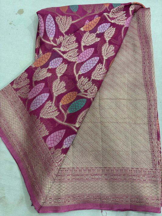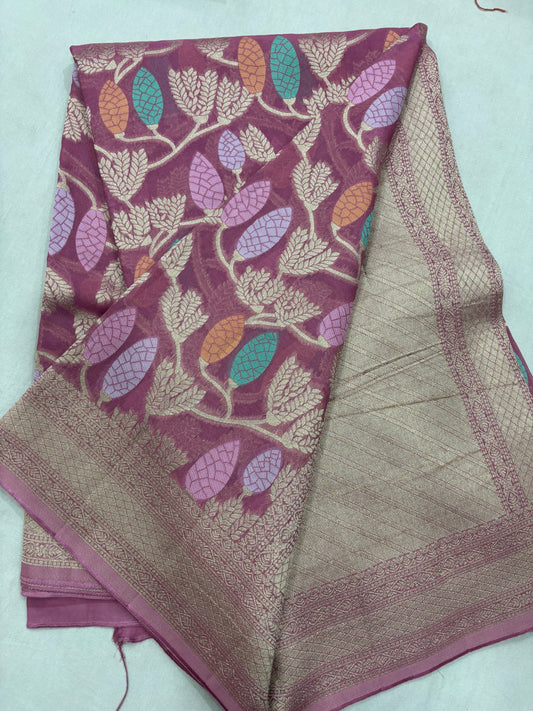 Lavender pink 1st Copy of PureKhaddi Georgette Banaras Sari