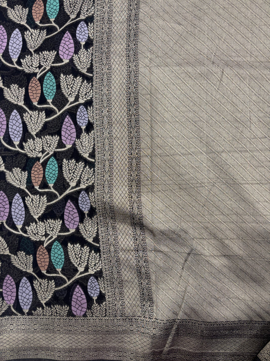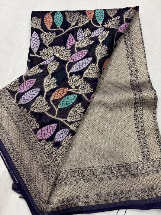 Black st Copy Of Pure Khaddi Georgette Banaras Sari