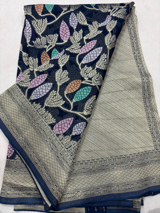 Royal Blue 1st Copy of Pure Khaddi Georgette Banaras Sari
