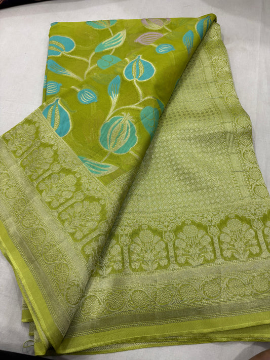 light Green 1st Copy of Pure Khaddi Georgette Banaras Sari
