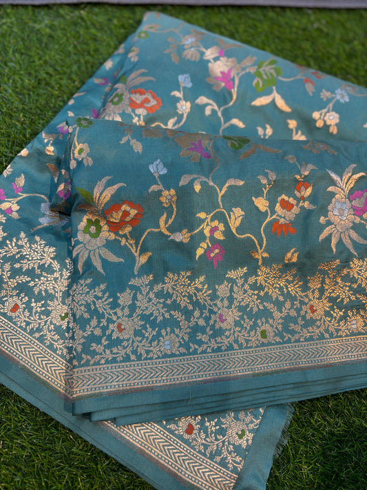 Sky Blue Pure Katan Jangla Banarasi Handloom Saree