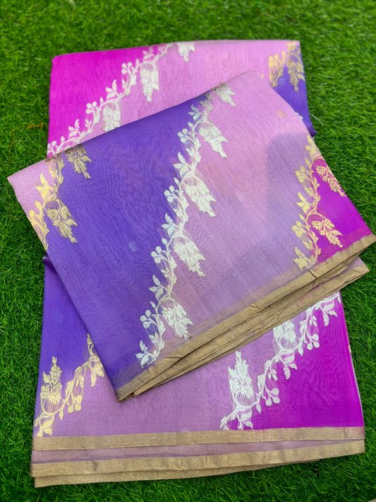 Discover the sheer grace of Kora Banarasi Sarees, where tradition meets lightness. Woven with fine organza (kora) silk and embellished with intricate zari work, these sarees are prized for their ethereal texture and rich Banarasi detailing.