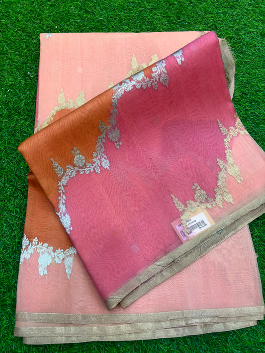 Light Orange Pure Kora Katan Rungkaat Banarasi Saree