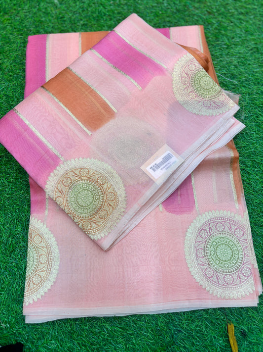 Peach Pure Kora Katan Rungkaat Banarasi Handloom Saree