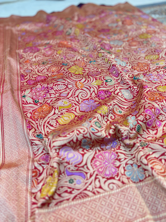 Red Pure Katan Kadhiyal Mebakari Banarsi Handloom Saree