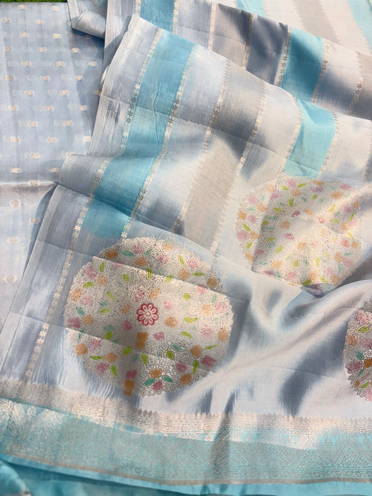 Sky Blue Pure Katan Light Weight Banarasi Handloom Saree