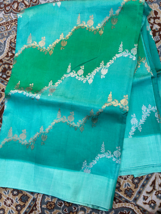 The Raw Mango Rungkaat Banarasi Handloom Saree is a celebration of timeless Banarasi artistry, inspired by the classic raw mango texture that has become a symbol of understated luxury in Indian handloom weaving. Carefully woven by master artisans of Banaras on traditional handlooms, this saree showcases the richness of pure Banarasi craftsmanship, where every thread tells a story of patience, skill, and heritage.