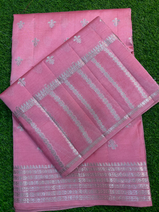 Light Rani Pink Pure Raw Mango Banana Handloom Saree