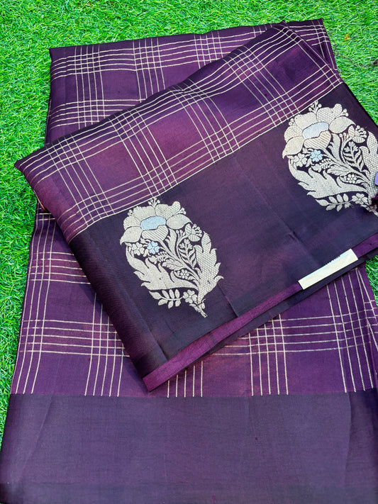 Dark Wine Braun Pure Raw Mango Banarasi Handloom Saree