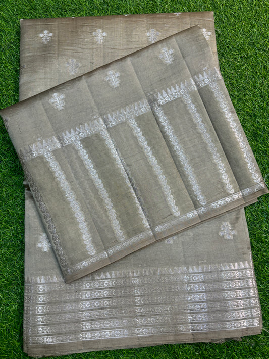 Light Gray Pure raw mango Banarasi Handloom Saree