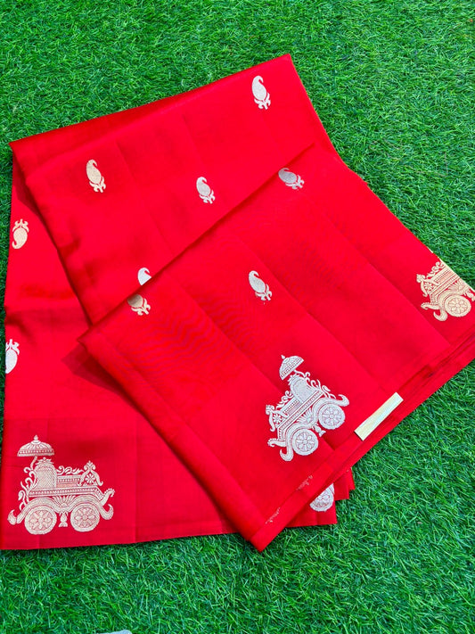 Red Pure Raw Mango Banarasi Hanloom Saree