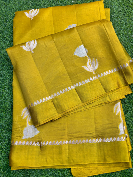 Mustard Yellow Raw Mango Banarasi Handloom Saree