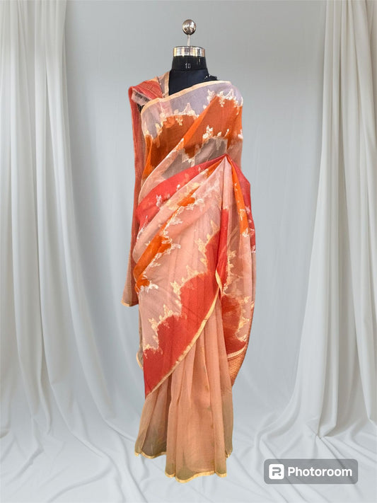 Peach Pure Kora Tissue Rungkaat Banarasi Handloom Saree