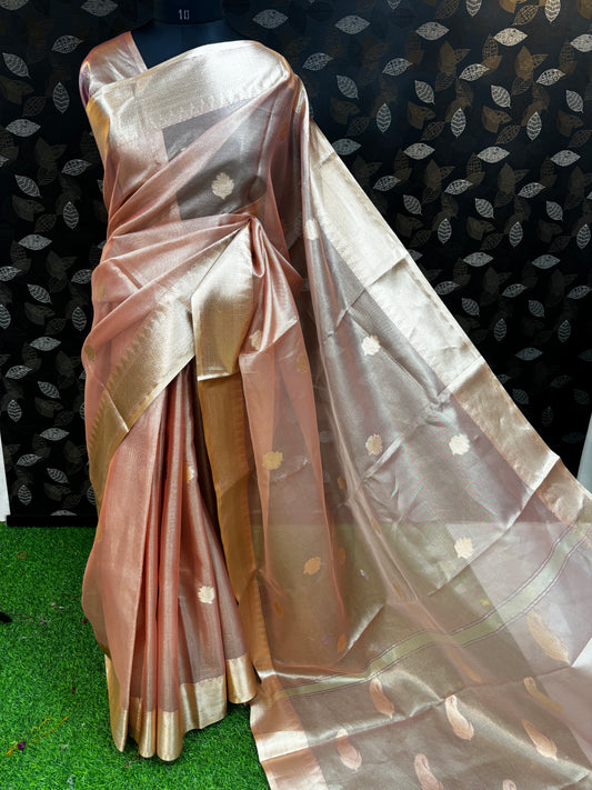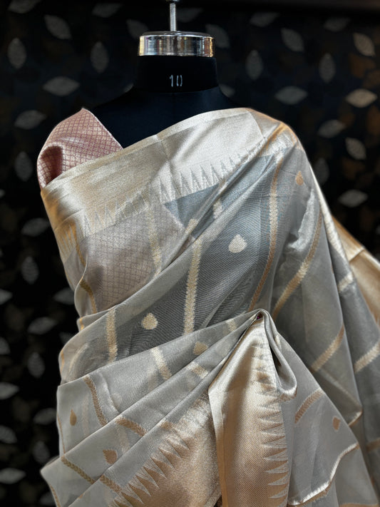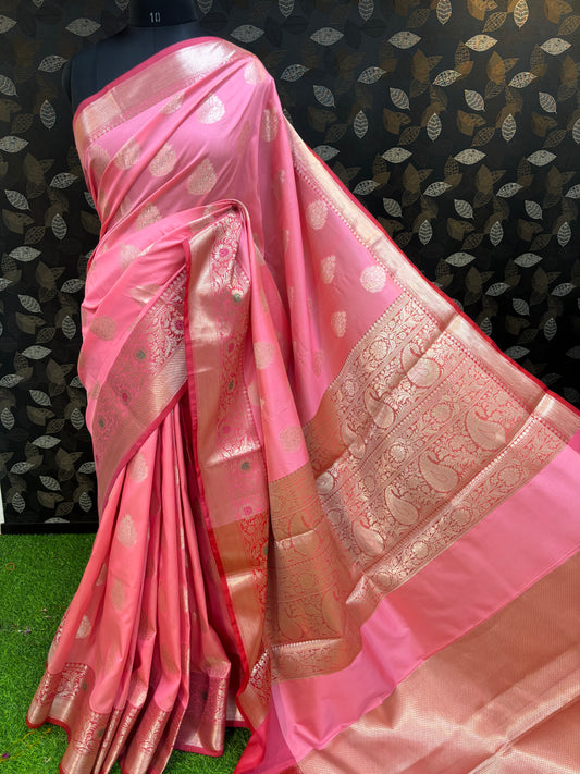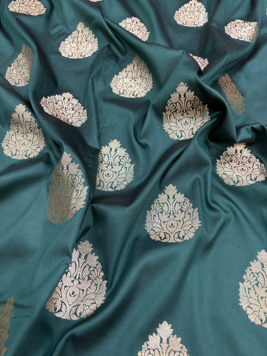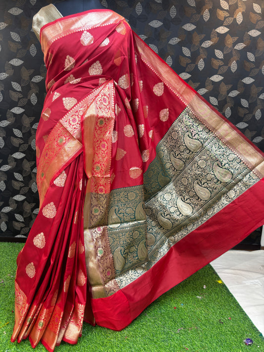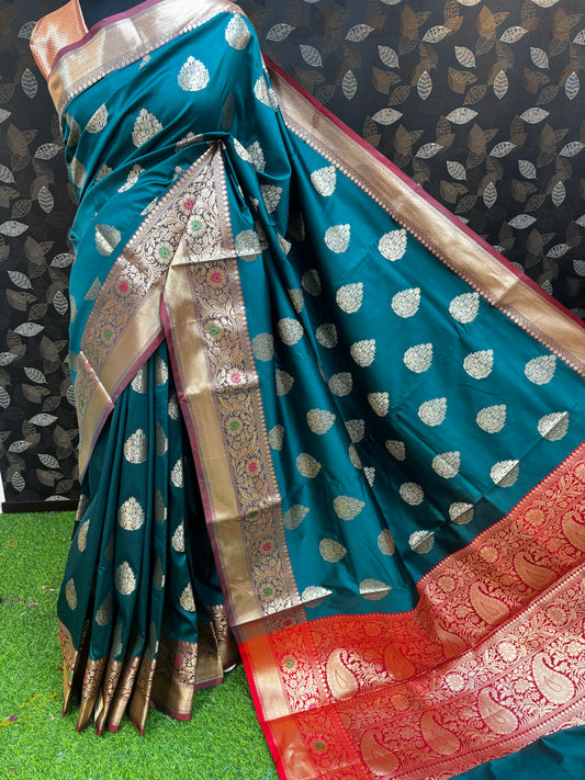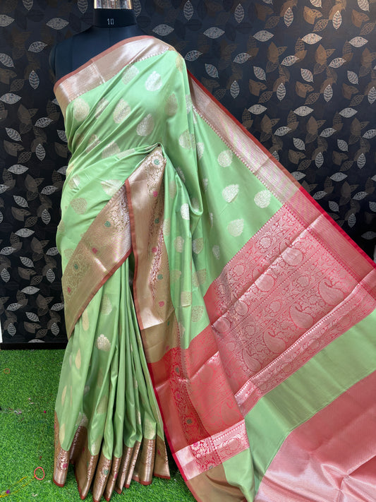 Pista Green With Red Semi Katan Bataya Handloom Saree