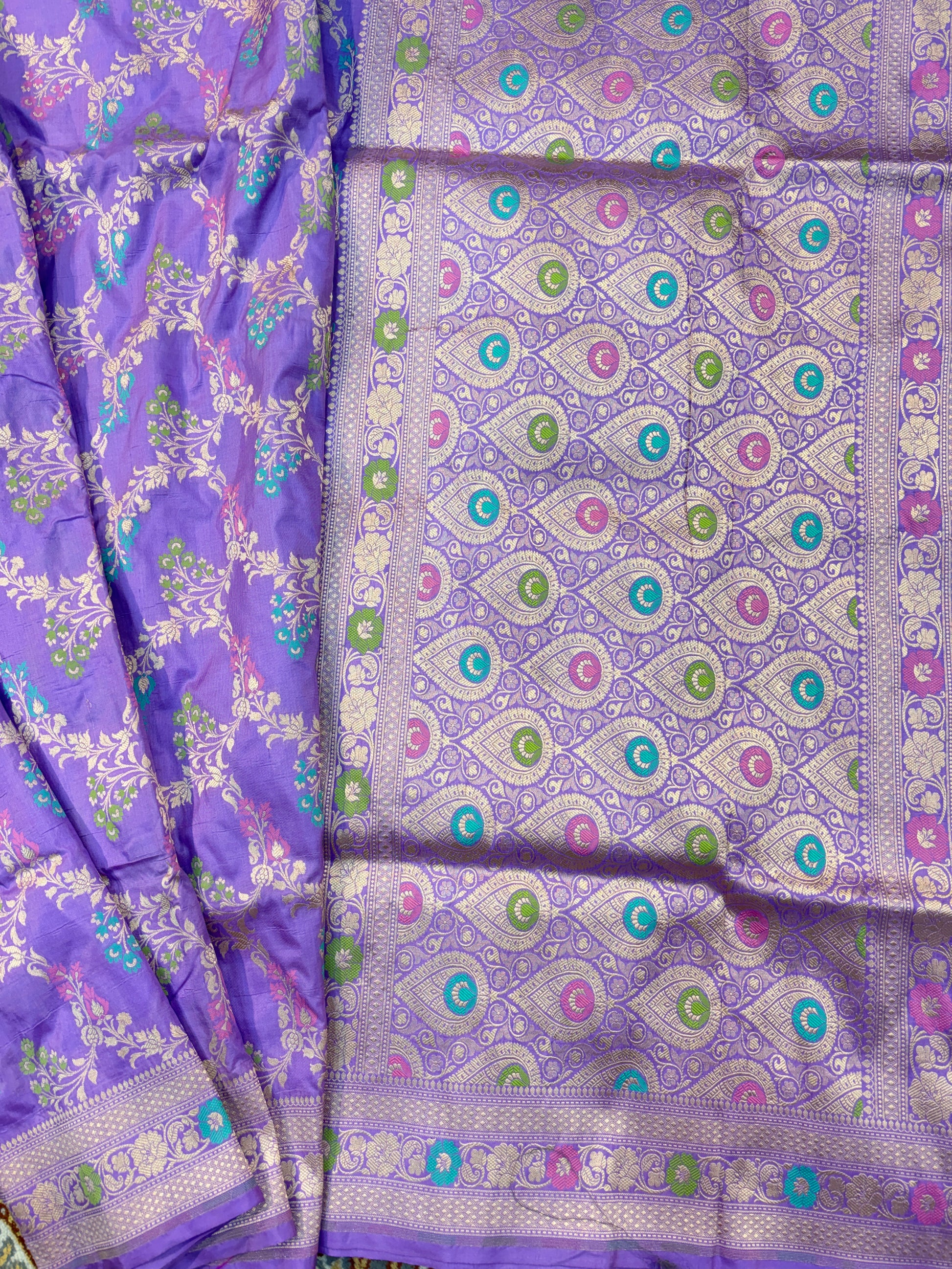 Lavender Pure Katan Meenakari Banarasi Handloom Saree