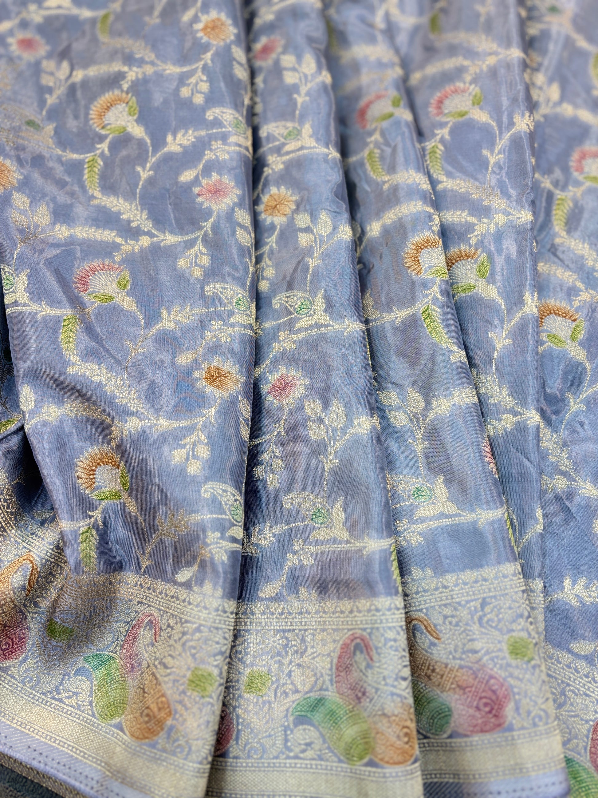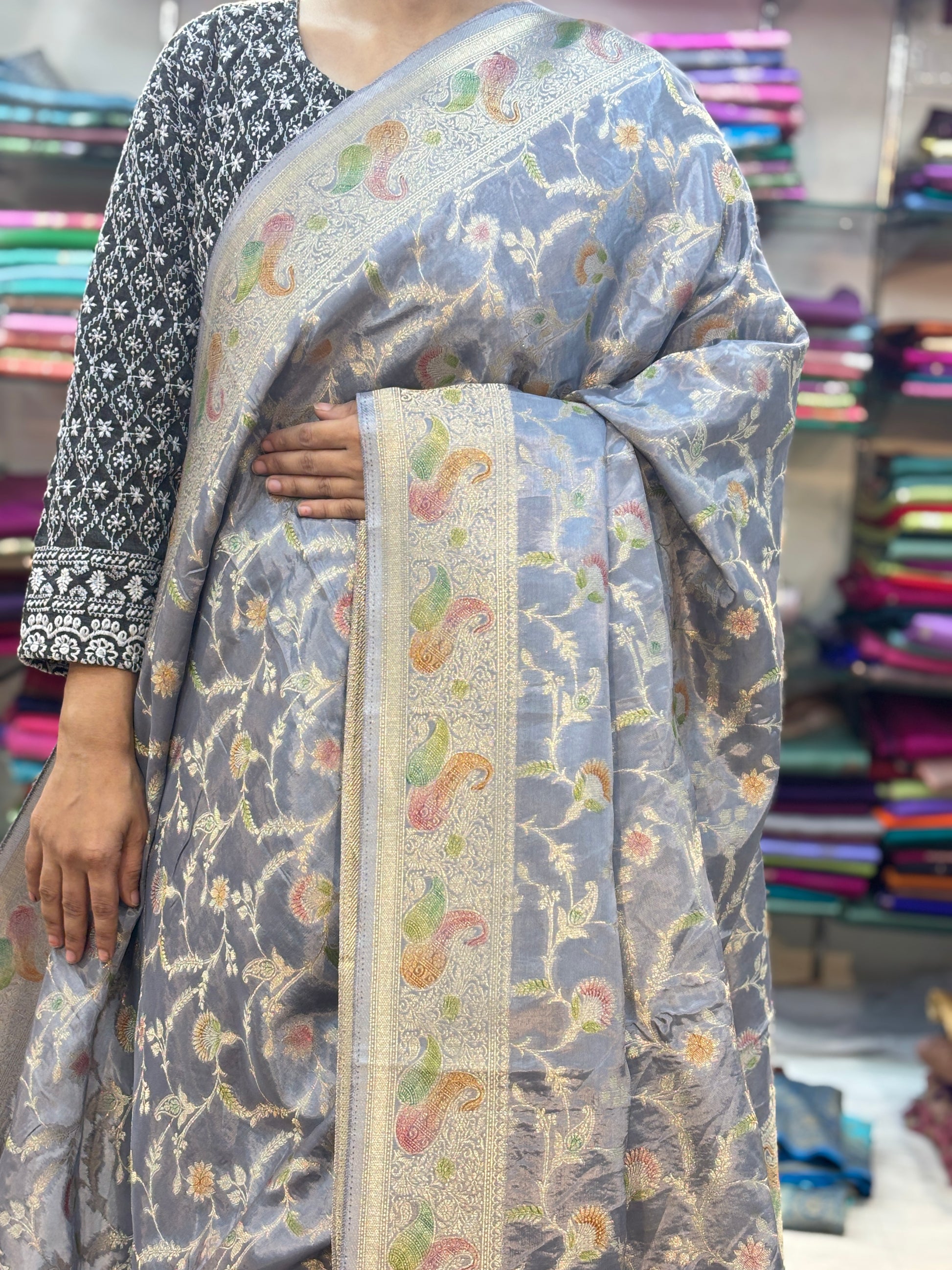 Light Pastel Grey Designer Banarasi Saree – Rungkaat Handloom