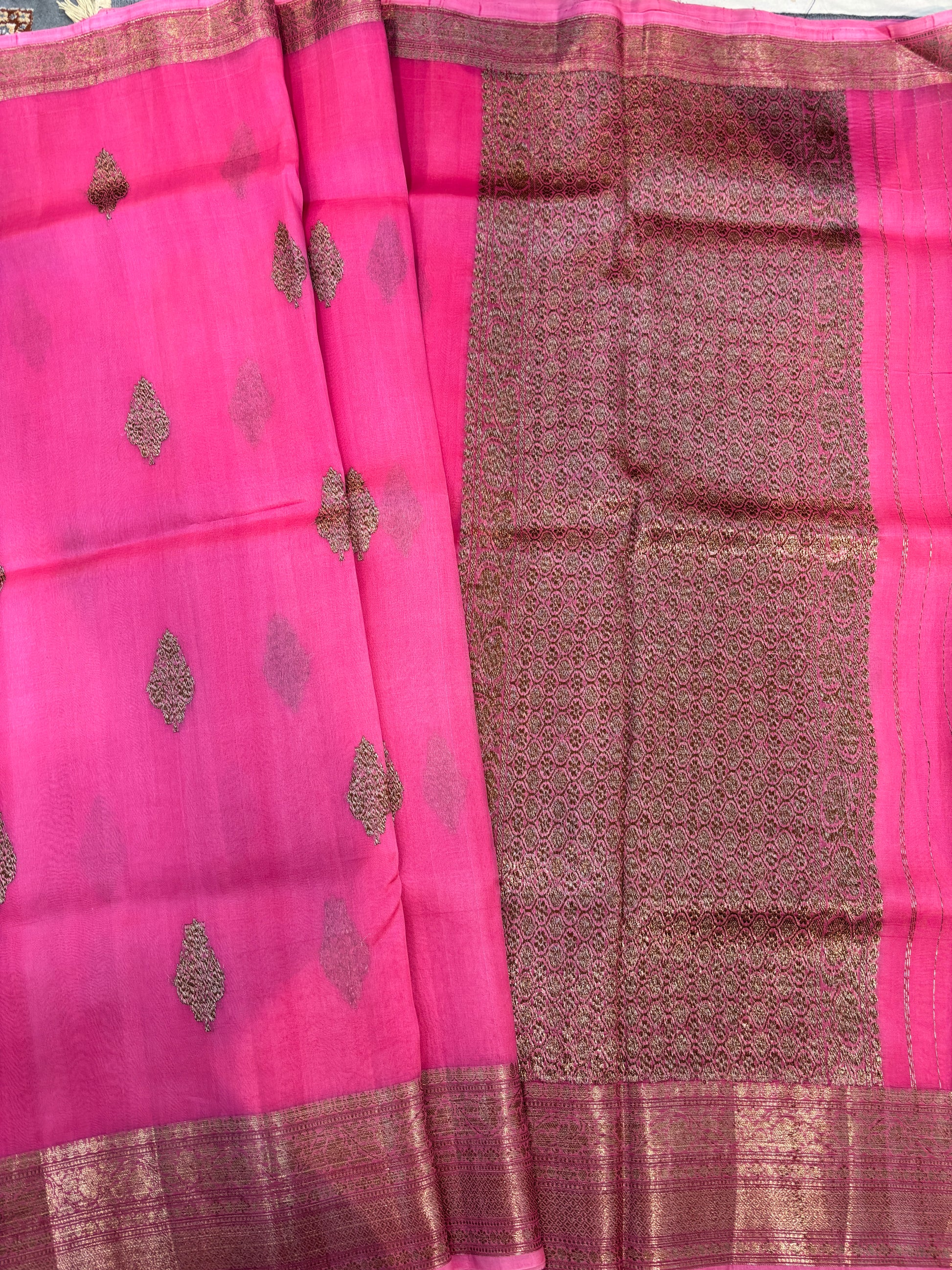 Pink Pure Kora Antique Zari Banarasi Handloom Saree