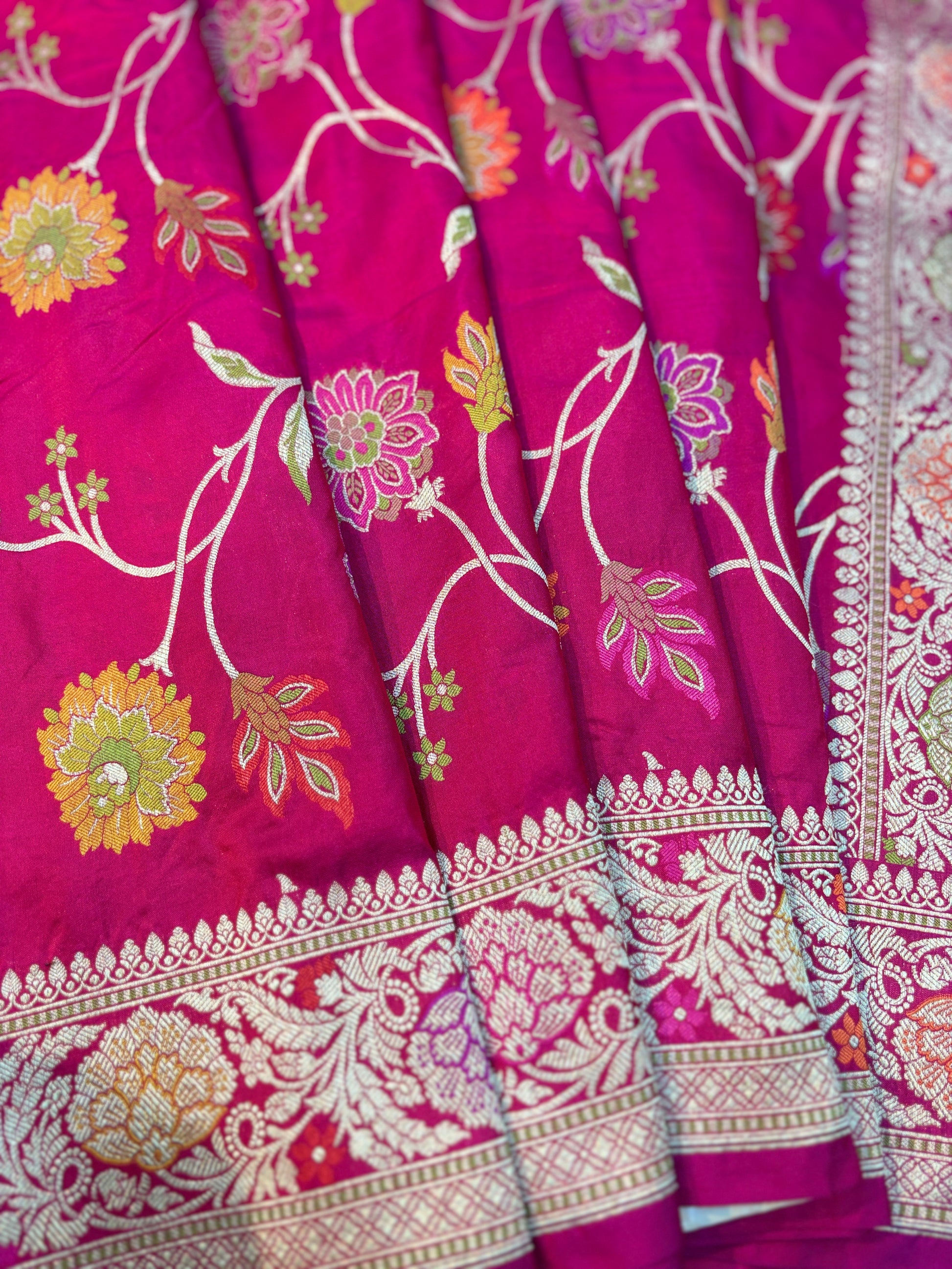 Rani Pink Pure Katan Menakari Banarasi Handloom Saree
