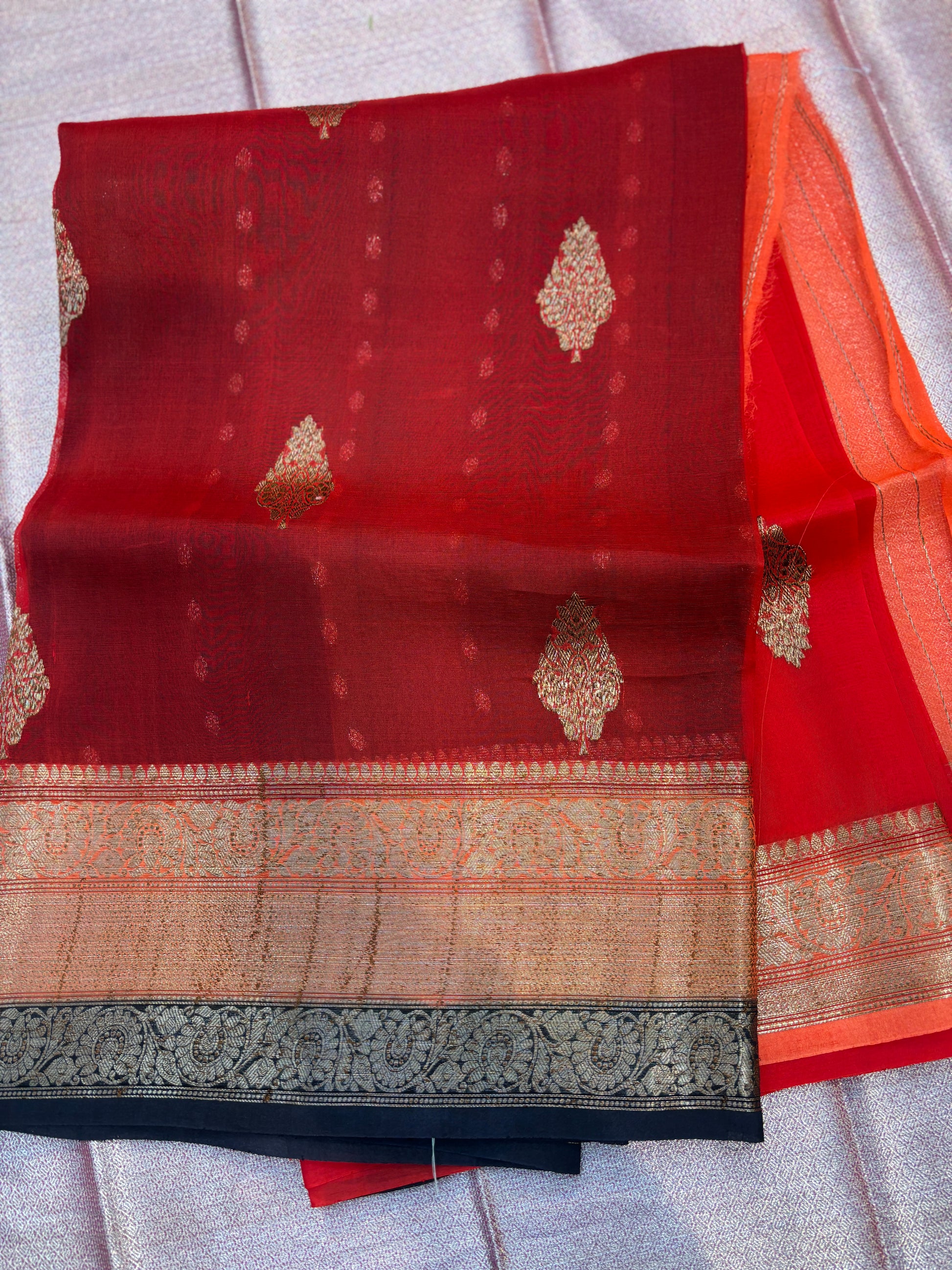 Red-Green Pure Kora Antique Zari Banarasi Handloom Saree