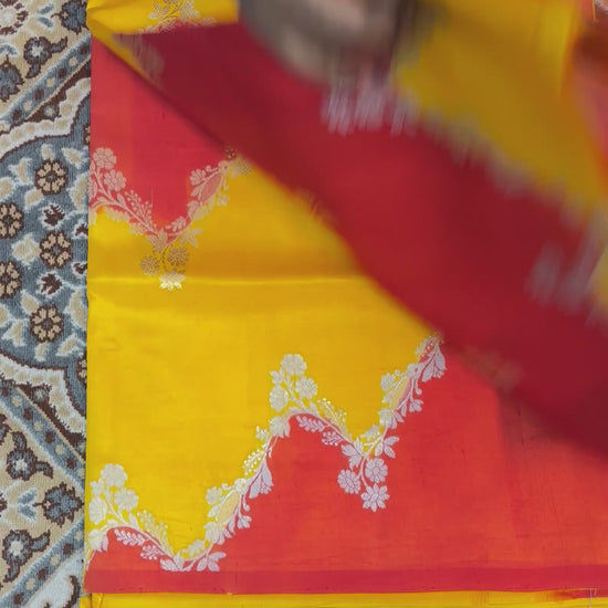 Experience the grace of Banaras with our Pure Raw Mango Rungkaat Banarasi Handloom Saree, a perfect blend of traditional artistry and contemporary elegance. Handwoven by skilled artisans of Varanasi, this saree reflects the rich heritage of Banarasi weaving with its soft texture, subtle sheen, and timeless appeal.